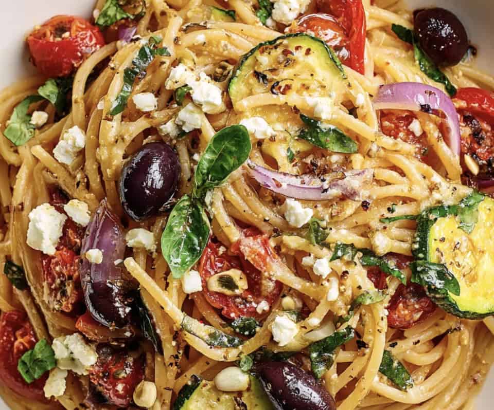 It’s not hard to believe in the health benefits of Olive Oil and Mediterranean cooking when you see the colours of this stunningly simple One pot pasta from EvaRecipe.com.